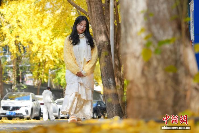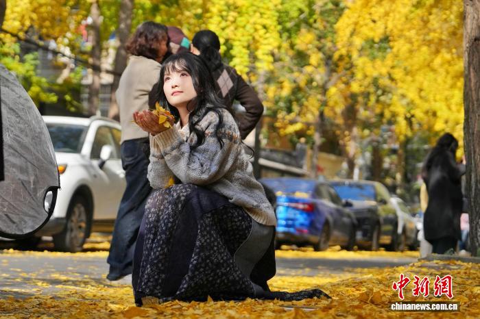 图为游人正在银杏树停挨卡摄影。中新社记者 杨华峰 摄