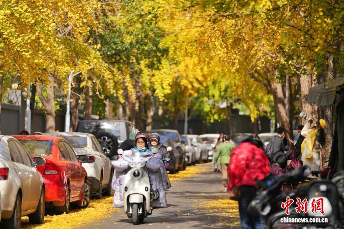 图为游人止走正在银杏树停。中新社记者 杨华峰 摄